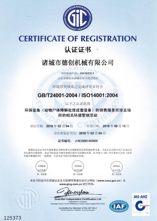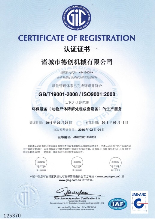 諸城市德創機械有限公司位于山東省諸城市,東鄰青島,南靠日照,北依濰坊,交通便利,環境優美。我公司專業生產無害化處理設備、濕化機、干化機。 我公司是一家擁有生產、加工及銷售的環保設備制造單位,多年來以先進的設備、過硬的質量、合理的價格、完美的售后,竭誠為廣大客戶服務,贏得了全國各地客戶的真誠信賴與大力支持,在行業中樹立了較高的知名度。 我們擁有精良的工藝裝備,外觀與內在并重的質量理念,用戶至上的服務意識,從而保證每一位用戶的產品應用取得更好的經濟效益。我們深信:“誠信、務實、創新”是我們所能帶給用戶的最有價值的東西。本著這種精神,我們正一天天穩步的向前發展。公司在不斷發展、擴大經營的同時,更把售后服務和客戶滿意度放在首要位置,以品質保證,價格合理,交貨期快,誠信服務和專業的知識來贏得用戶完全的信任。信任源于品質,服務創造未來,公司與您攜手共創美好明天! |